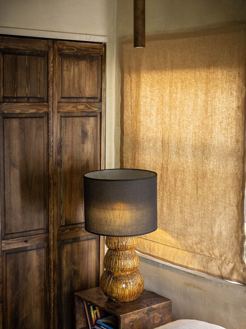 The Ochre Tamegroute Lamp blends artisanal craftsmanship with modern luxury. Handmade in Morocco, the ceramic base features the signature glaze and organic texture that make Tamegroute ceramics so distinctive. Its sculptural shape and warm finish create an inviting, elevated glow that enhances any interior.